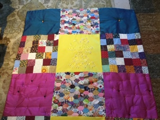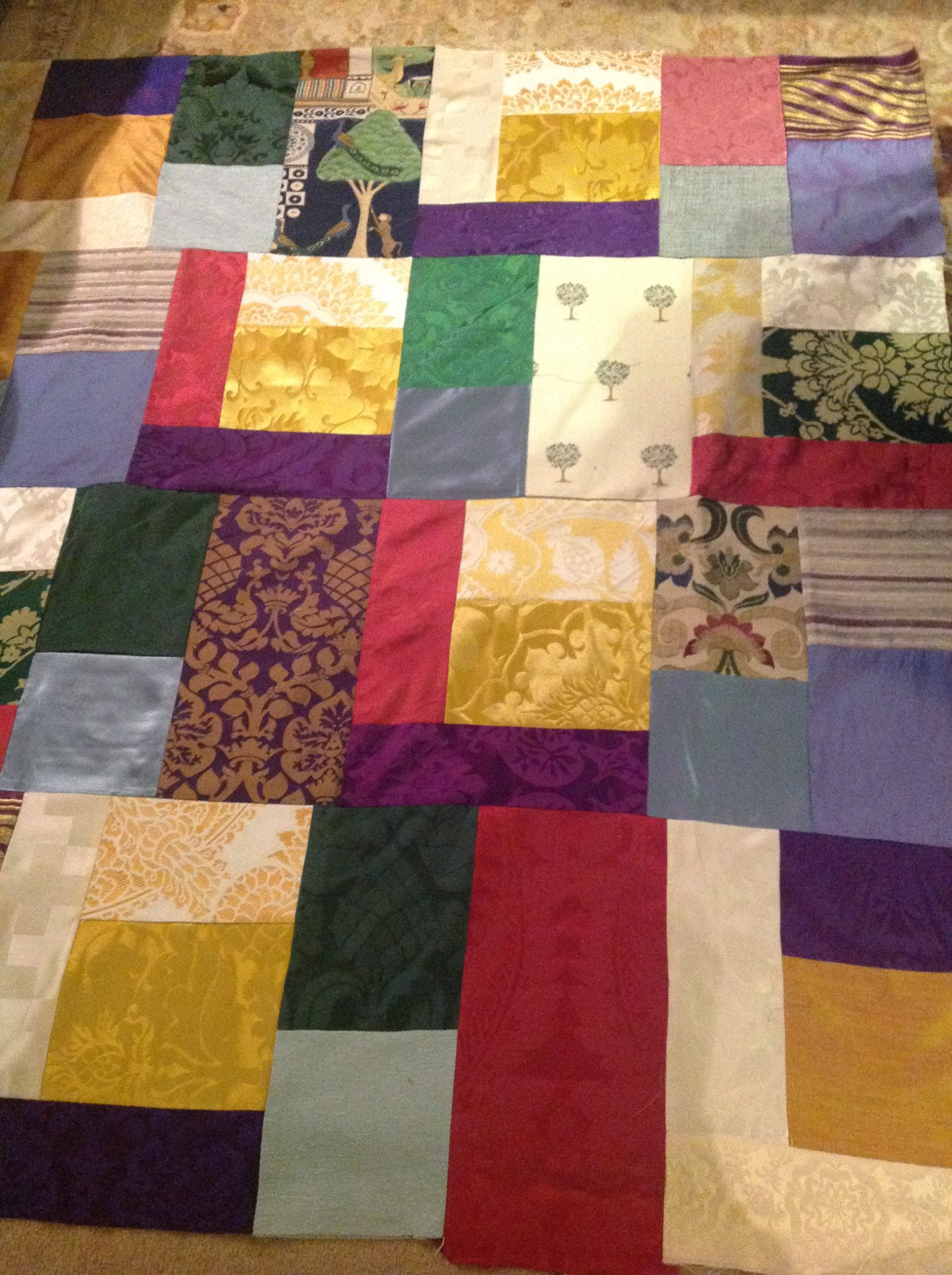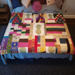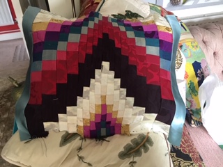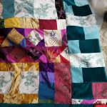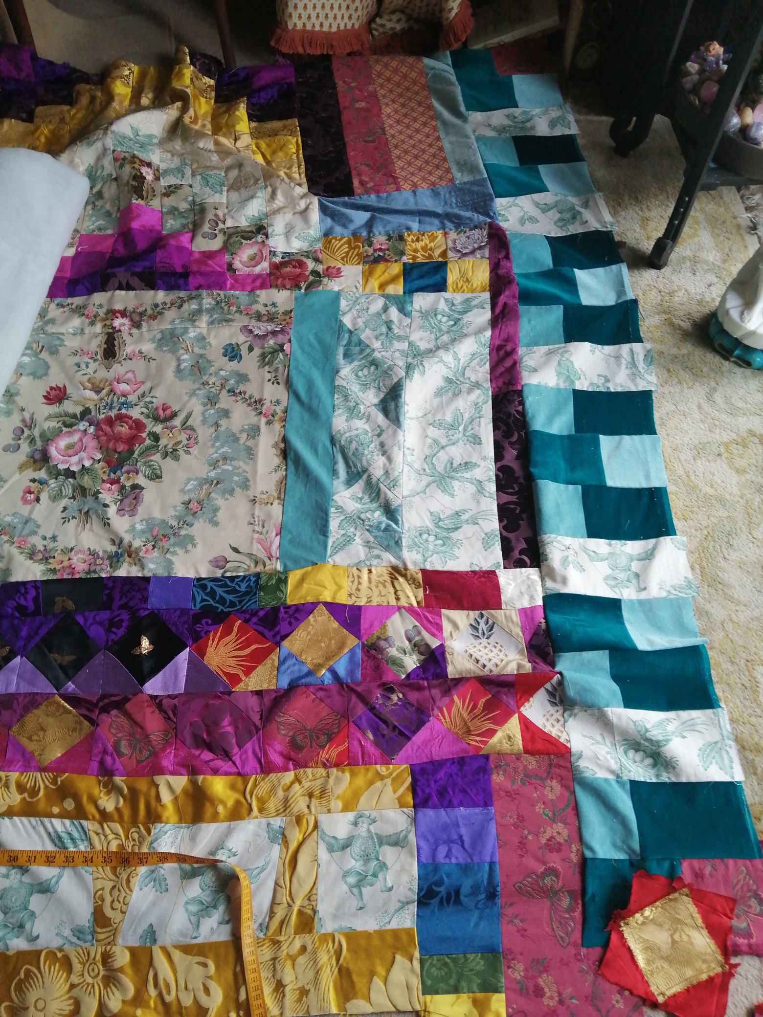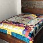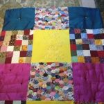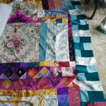 Each piece is constructed randomly, restricted by the number and sizes of fabric pieces available. ‘That’s the challenge I like, making a balanced work out of apparently disparate elements. It’s mathematical as well as creative, and that combination is really satisfying’.